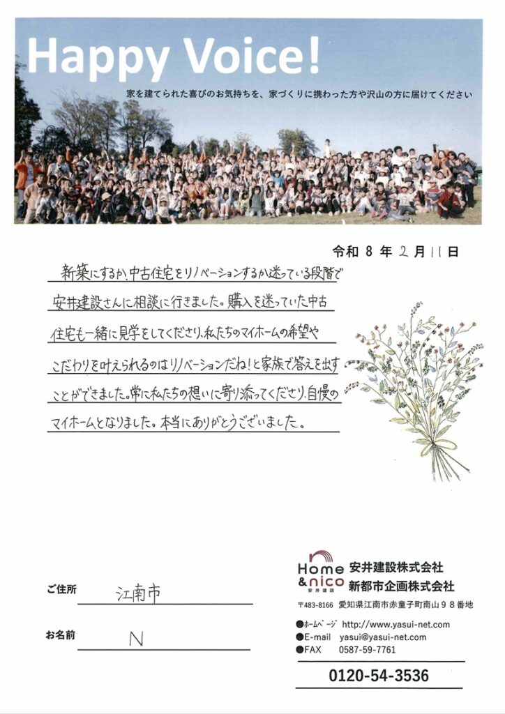 大切な家に長く家族と住みたい…の思いでリフォームを考えました。主人のインスピレーションで安井建設さん一択に決まり、大満足しています。何かと長い道のりをスタッフの皆さんが一緒に乗り越えて下さったことは、